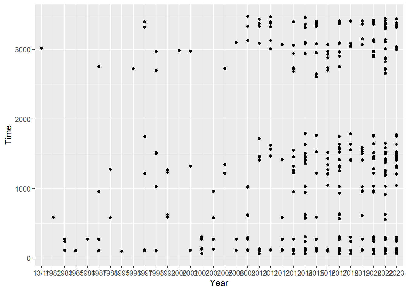 SWIM <- readr::read_csv(here::here("data", "cleaned-cms-top-all-time-2023-swim.csv"))Rows: 440 Columns: 5